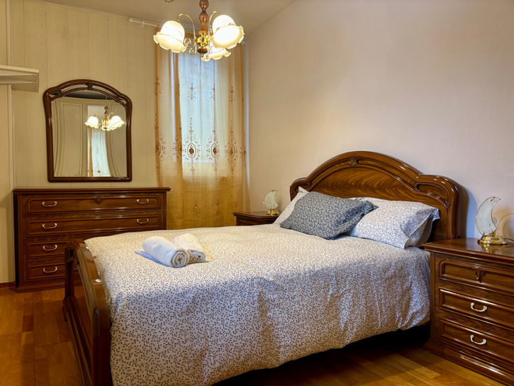 L'appartamento dispone di due camere da letto, entrambe dotate di spaziosi guardaroba: una con letto matrimoniale e l'altra con due letti singoli. Per esigenze aggiuntive, nella zona giorno sono presenti un divano letto e una poltrona letto, che offrono ulteriori due posti letto. La biancheria da letto è fornita, e su richiesta è disponibile un lettino da viaggio per bambini.