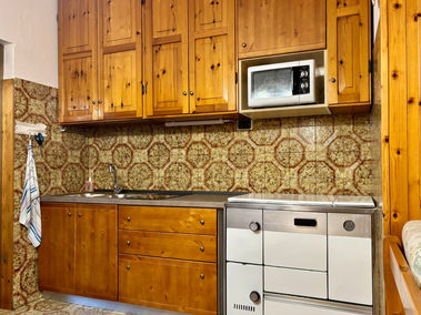 La zona giorno della casa è un ampio open space che combina soggiorno, cucina e area pranzo. Il soggiorno è arredato con un comodo divano e una TV, ideale per momenti di relax. La cucina, completamente attrezzata con piastra a induzione e forno a microonde, offre tutto il necessario per preparare i propri piatti preferiti.